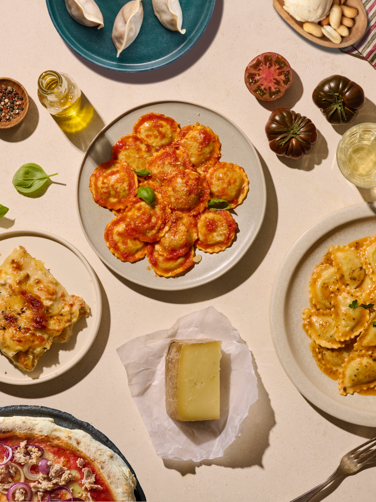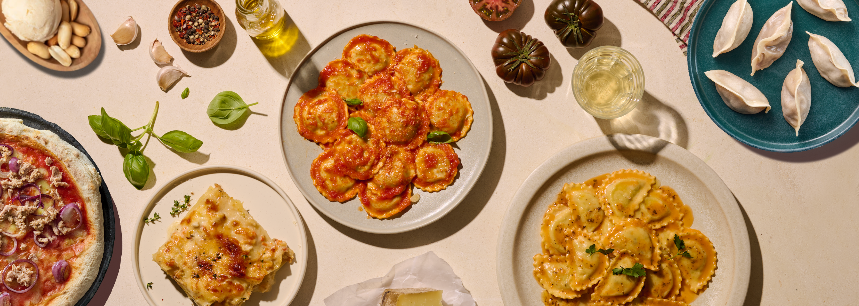 Wir sind die Ersten, die klassische italienische Pasta und Lasagne in echte High-Protein-Gerichte verwandelt haben – mit Kichererbsenmehl im Teig und raffiniert abgeschmeckten Füllungen. Ob unsere Ravioli mit herzhafter Fleischfüllung oder die Lasagne mit hellem Ragù aus Hähnchen und Pute: Hier trifft authentischer Geschmack auf ausgewogene Nährwerte.