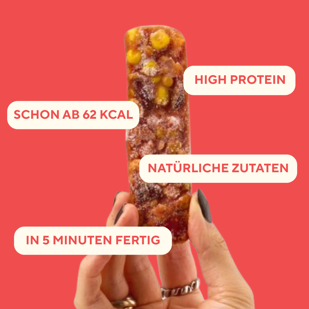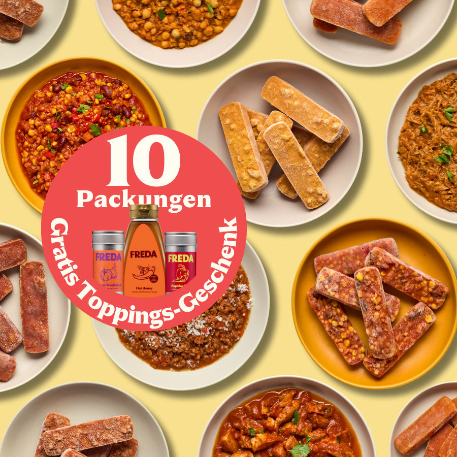 Nimm 1–2 Blocks für einen Snack, 3–5 für ein vollwertiges Meal – ganz so, wie Du gerade Hunger hast. Weil alles perfekt portioniert ist, nutzt Du wirklich nur das, was Du gerade brauchst. Und das Beste: Was Du nicht nutzt, bleibt einfach im Gefrierschrank. So hast Du jederzeit Flexibilität, ohne dass etwas schlecht wird oder im Müll landet. Kein Überkaufen, keine Reste, kein Food Waste.