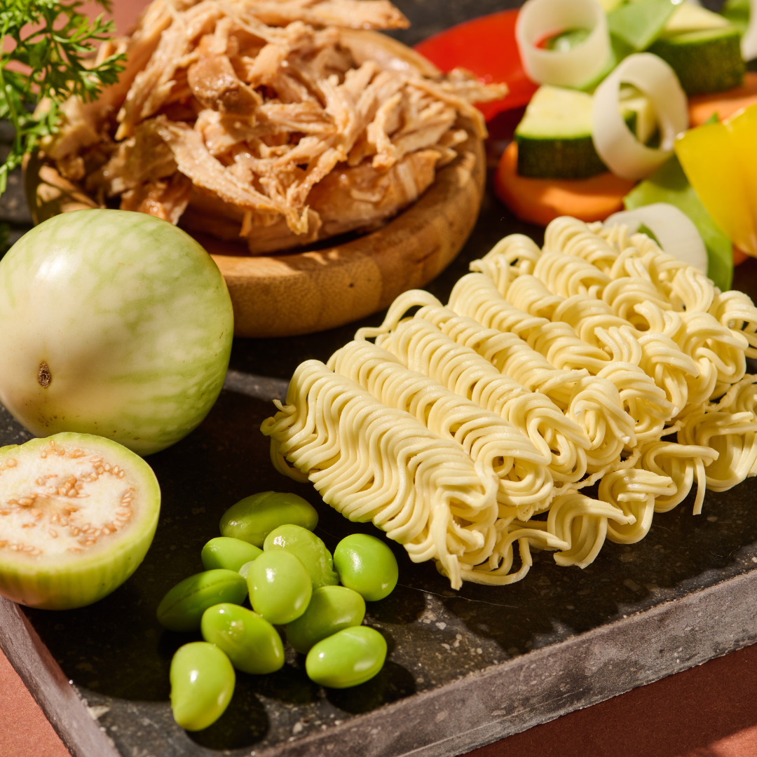 Unsere High-Protein-Ramen-Suppe basiert auf einer kräftigen Hühnerbrühe, kombiniert mit Mie-Nudeln und knackigem Gemüse. Herzhaft, wärmend und proteinreich – das perfekte Soulfood für kalte Tage und schnelle Mittagspausen.